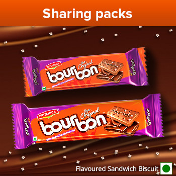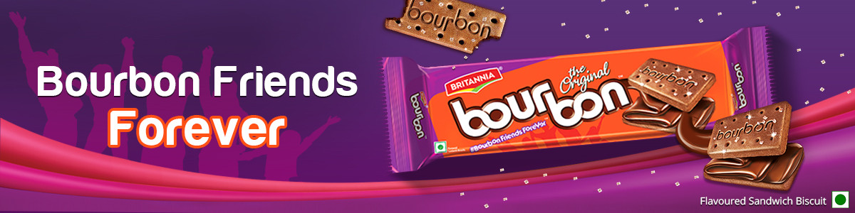 Created with delicious chocolatey creme, crispy choco biscuits and sparkling sugar crystals, Britannia Bourbon fuels every BFF's ever-growing hunger for fun and fulfilling moments. Made with love, since 1955.