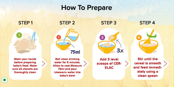 Step 2: Boil clean drinking water for 5 minutes. Allow to cool. Measure 75ml and pour lukewarm water into baby's bowl