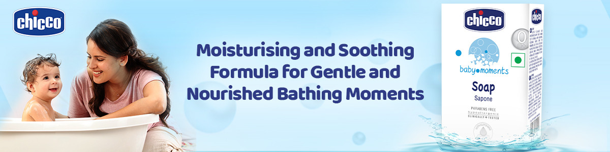 Make your baby’s bathing time, a moment of deep love and care with Chicco Baby Moments Soap. Its deeply moisturising formula enriched with Glycerine, Olive fruit oil and Aloe vera not just cleanses your baby’s skin but nourishes it as well, keeping it soft and smooth.