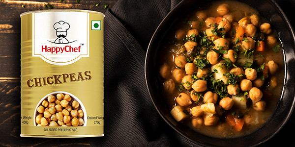 Happy Chef Chickpeas can of ready-to-use classic chickpeas is a saviour when there's no time to cook. The easy-to-open can is convenient and available to use at any time whether you're cooking at home or out camping.