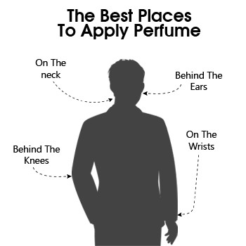 Apply perfume On the Neck, On the Wrists, Behind the ears and Behind the Knees. These are warm points and arteries are closest to the surface of the skin.