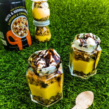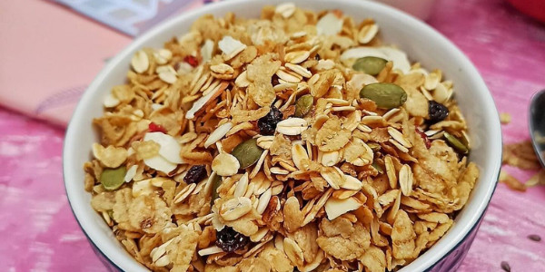 Muesli can be eaten with milk or yoghurt. If you want to have a good breakfast, just add some milk along with crunchy nuts and berries muesli and enjoy it as a meal.