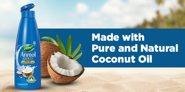 Anmol Coconut Oil combines more than a century-old trust of Dabur with the purity and nourishment of finest handpicked and sun-dried coconuts available in India. The freshness of Coconut Oil is kept intact after the multi-stage filtration process. The regular use of edible Coconut Oil is considered good for health and provides nourishment.