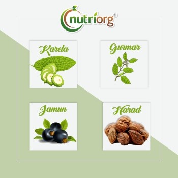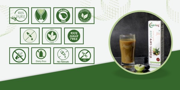 - Nutriorg Diabetic Care Juice is a unique combination of Bitter Gourd (karela), Black Plum(Jamun), Harad,Indian Gooseberry(amla),Baheda, GymnemaSylvestre(Gurmar) and Aloevera Juice.