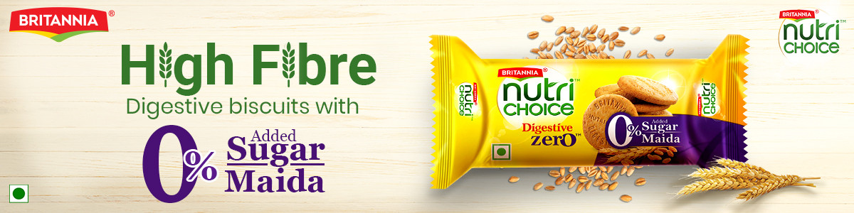 Britannia NutriChoice Digestive Zero biscuits are high fibre biscuits containing no added maida and no added sugar. Loaded with the richness of wheat flour and bran, these biscuits make a perfect snacking partner for people who do not wish to compromise a bit on their health.