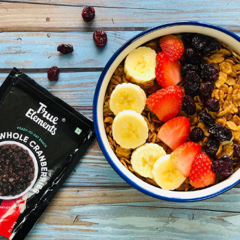True Elements Dried Whole Cranberries are naturally sun-dried, with no added chemical preservatives or artificial colours. They offer a great tangy-sweet flavour, which keeps you wanting more. Have them as a snack, add them to your oatmeal or even desserts. These antioxidant-rich dried cranberries are a great topping and flavour booster.