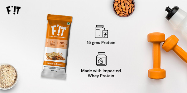 Nuts N Seeds F’iT Nutrition Bar is rich source of antioxidants, proteins, zinc, magnesium and essential fatty acid Omega 3. This Wholesome bar infuses energy to tackle all the routine work stress free. This bar which can travel with you along and can come to your rescue to suppress your hunger pangs. It is 100% natural product and contains no added sugar to provide the balanced nutritional requirements for your body. It can also be consumed before or after your workout sessions as it is a good energy booster.