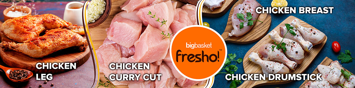Fresho Meat is Bigbasket’s brand for fresh meat, poultry, and seafood. We ensure that utmost care is taken in identifying the best sources and selecting the right raw materials to provide you with premium quality and succulent products.