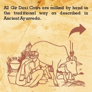 - A2 Gir Desi Cow are milked by hand in the traditional way as described in Ancient Ayurveda.