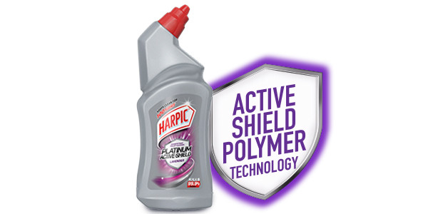 Harpic Platinum Active shield combines the powerful stain removal of Harpic with revolutionary stain-resistant technology that prevents stains from sticking by forming a protective non-stick layer and keeps your toilet cleaner for longer. Use the New Harpic platinum active-shield for a toilet that is not just clean, but also stays clean, for up to 100 flushes!