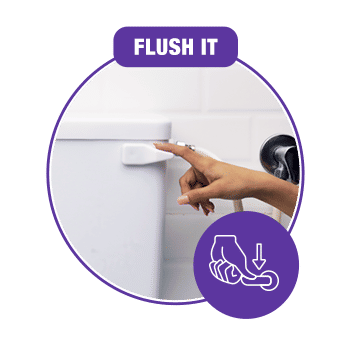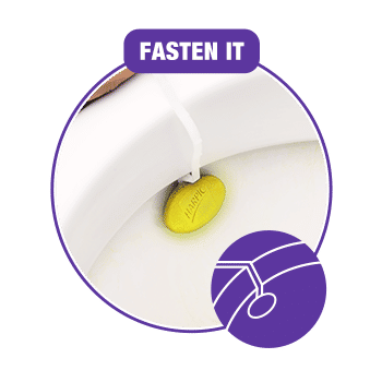 Stretch the plastic clip, use the clip to attach & block securely into the rim of the toilet where flush water flows maximum.