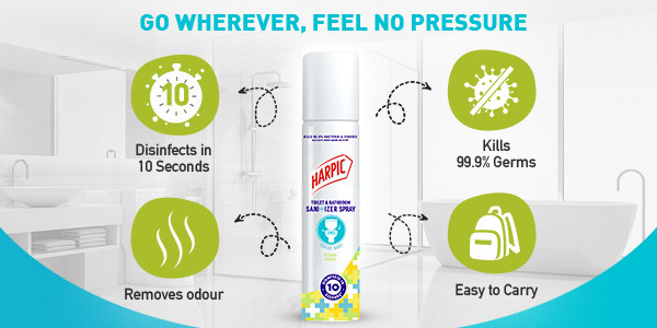 Harpic Toilet and Bathroom Sanitizer Spray, 90ml and 50ml