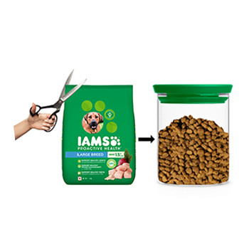 On opening the pack, store IAMS dog food in an air-tight container, in a cool, dry place, away from sunlight.