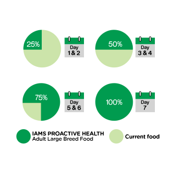 The change from current food to IAMS Proactive Health is best done gradually over 7 days