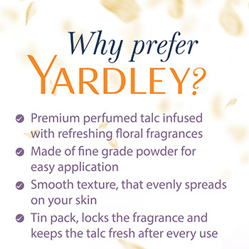 Yardley talcs are delicately perfumed with the finest floral fragrances that promise to fill your day with natural freshness.