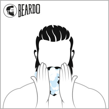 Spray water on your face and let your beard be cleansed with water before anything else! Take some liquid in your hands and lather it on to your palms to apply on your beard!