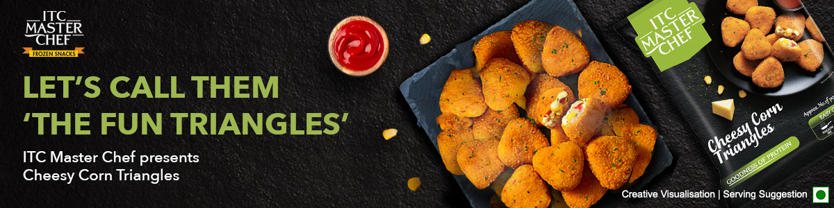 Get ready to be overwhelmed by the perfect cheesy treat with ITC Master Chef’s Cheesy Corn Triangles. Brought to you in an incredible ready to cook pack to be enjoyed at home. Surprise the kids with a delicious plate of Cheesy Corn Triangles in minutes. These crunchy triangle treats are loaded with soft melting cheese and corn on the inside, seasoned with Italian spices. Have one piece and you’ll be wanting more. What’s incredible is that it’s quick and easy to cook. You can make your serving of cheesy corn triangles either by shallow frying it or just deep fry it. ITC Master Chef offers a wide variety of Veg and Non-Veg snacks that are ready to eat and easy to cook.