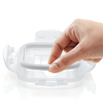 | The lid of the container comes with an easy-to-clean silicone gasket. When cleaning, separate the gasket from the lid, soak in soapy water, rub it with a sponge, and rinse under running water. Your container is as clean as new in no time. |