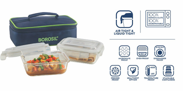 Our borosil lunch boxes ensure that your food not only looks, tastes good but also is as hygienic just as it did while it was lovingly prepared. Bring Home cooked healthy immunity boosting meals to office and protect yourselves. Made of the finest borosilicate glass, the leak proof boxes are 100 percent microwavable, 100 percent stain proof and leach no chemicals into your food. The quality fabric carry bags are machine washable. There is no better way to bring home to the office.