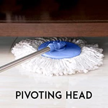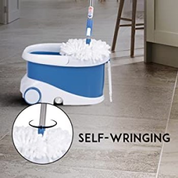 | The self-wringing feature of this mop makes cleaning faster and easier. Excess water is removed by squeezing the head in the spinner attached in the bucket, keeping the fiber damp enough for cleaning without leaving any residue and also for drying the mop faster after use. |