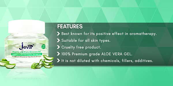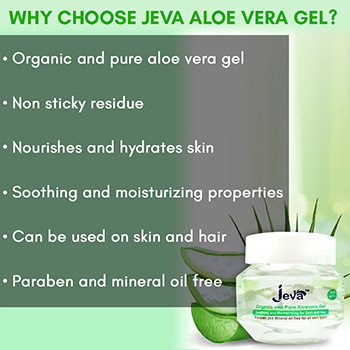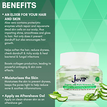 Introducing aloe vera gel that de-stresses your skin by soothing and hydrating it while protecting it from pollution. Jeva aloe vera gel made with pure aloe vera extract moisturizes and nourishes dry and dehydrated skin. Best solution to refresh stressed skin, Jeva pure Aloe Vera Gel has a non-sticky, lightweight formula that protects the skin from dust, grime and city pollution, giving you fresh, smooth and hydrated skin. A perfect daily use moisturiser, it gets easily absorbed into skin and can be applied before makeup too to prep your skin.