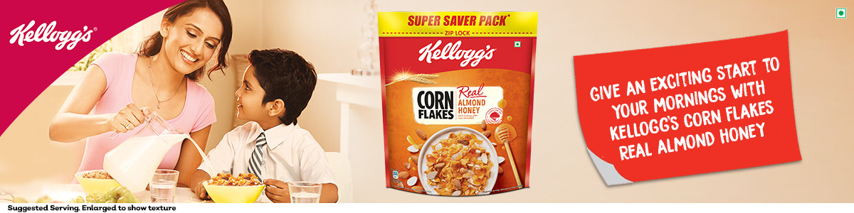 Ingredients: 30 g Kellogg’s Corn Flakes Real Almond and Honey, 200 ml milk, One Apple, 6 almonds Honey to drizzle