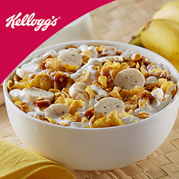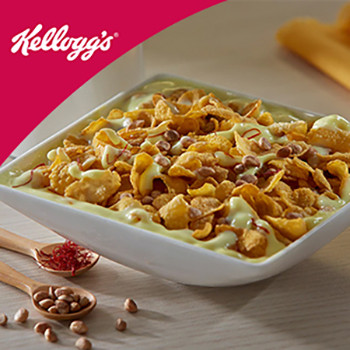 Ingredients: 1 Cup Kellogg's Corn Flakes, 1 Banana, sliced, 1 tbsp Peanut chikki, crushed, 1 Cup Cold milk.