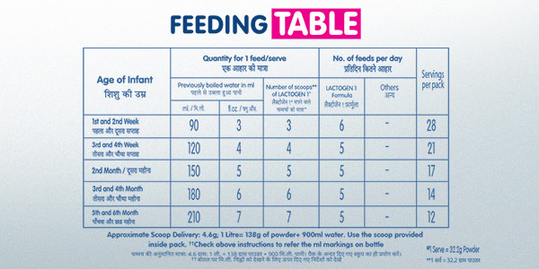 Approximate Scoop Delivery: 4.6g; 1 Litre= 138g of powder + 900ml water. Use the scoop provided inside the pack. Check the above instructions to refer to the ml markings on the bottle.