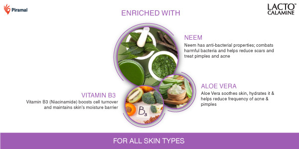 Powered with Kaolin Clay, daily use of Lacto Calamine Lotion absorbs excess oil & helps fight oily skin problems like pimples, blackheads, patchy skin & darkspots