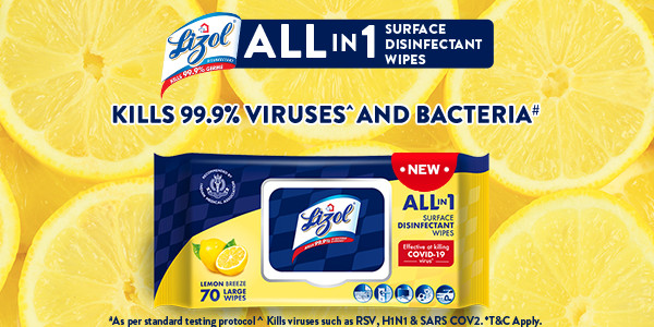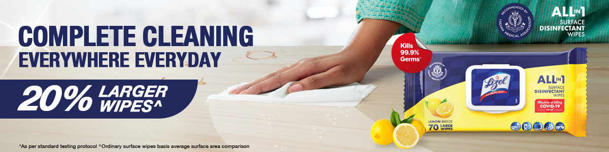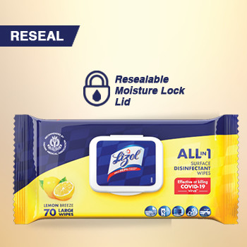 Lizol wipes are disinfecting surface wipes that efficiently kill 99.9% bacteria and viruses, including COVID-19 virus. These wipes are easy to use, and they also ensure that all surfaces in home, office & public places are germ free and sparkling clean. These wipes work on a variety of surfaces like electronics (exterior), glass, plastic, marble, ceramic, metallic surfaces and are suitable for use in places like kitchen, bathroom, toys & children’s play areas, doorknobs, cars, etc. The wipes come in a refreshing lemon breeze fragrance and are 20% larger than ordinary surface wipes.