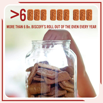 Today Lotus Caramelised biscuits are present in 6 continents and is an international success, as over 6 billion biscuits roll out of the oven every year. If you place them in a row, they would circle the world 9 times.