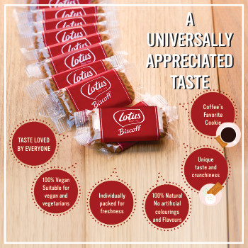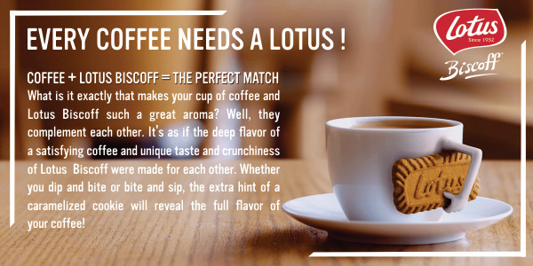 As coffee and Lotus have complementary taste profiles, which is exceptional! Concretely, it means that the odor and aroma of both components, coffee and biscuits do not cover one another but boost each other flavours.