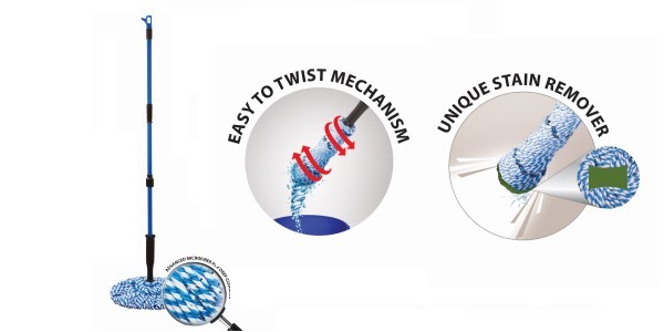 Gala Twist Mop with its super-absorbent microfiber that deep cleans and gives mirror-like finish. Its scrubber removes even the most stubborn stains, without leaving behind any lint. Suitable for all types of floors. this twist mop comes with a comfortable grip and a refill that's easy to replace. So. whether it comes to performance, efficiency or convenience. Gala Twist Mop is head and shoulders above ordinary mops.