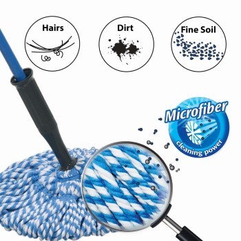 Gala Microfiber Twist mop has unique twist mechanism for hands free cleaning without bending. It ensures that you are not directly in contact with germs and viruses on the floor.