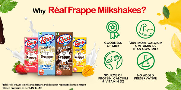 Réal Frappe Milkshake comes in a single serve pack, hence its goodness should be consumed immediately after opening the pack.