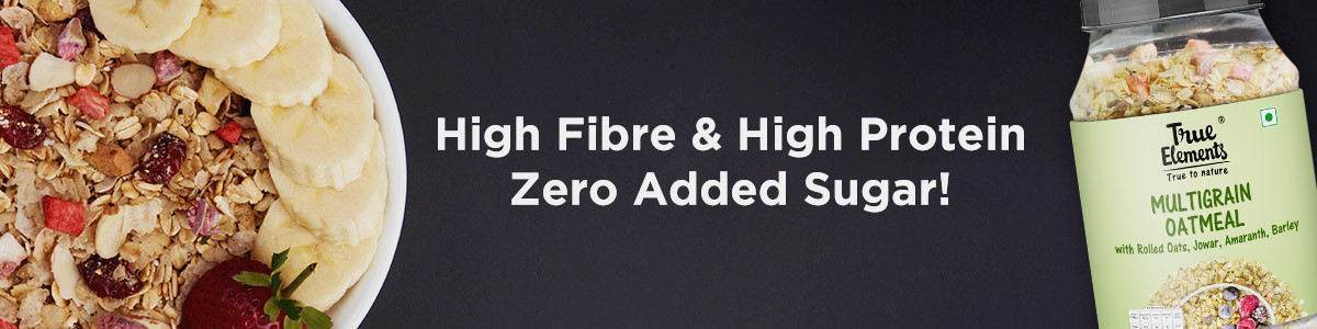 Hence, to make the best use of whole grains and its benefits, with a taste palatable to your taste buds, True Elements Multigrain Oatmeal has been curated. Chosen on the basis of taste, our multigrain oatmeal comprises of Bajra, Jowar, Barley in the form of flakes and Amaranth in the form of puff, for a crispy texture. It possesses the same composition of Honey and Cane Sorghum as compared to the ordinary oatmeal, with Zero Added Sugar.