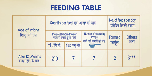 5. Consult feeding table and add exact number of leveled scoops for age of baby. Only use scoop provided. Shake/mix to dissolve powder