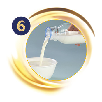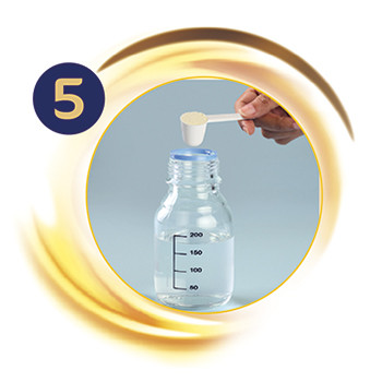 Consult the feeding table and add exactly number of leveled scoops for the age of a baby. Only use the scoop provided. Shake/mix to dissolve powder.