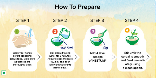 Step 2: Boil clean drinking water for 5 minutes. Allow to cool. Measure 162.5ml and pour lukewarm water into baby's bowl.