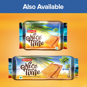 Britannia Nice Time Coconut biscuits hold India’s tradition at its heart, the sweet coconut flavour along with crunchy sugar sprinkles of these biscuits is what makes them unique and oh-so-irresistible.