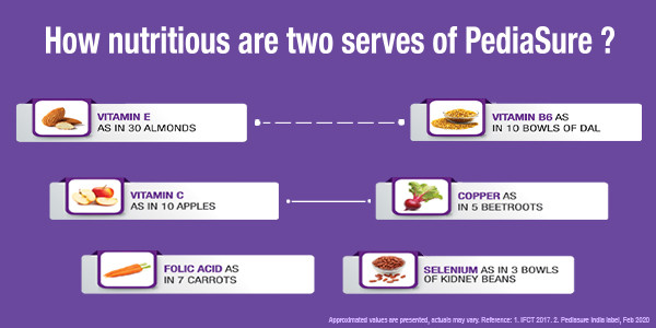 PediaSure is a nutritional supplement that provides complete, balanced nutrition for children 2 years & above– those special years of rapid growth and development. When consumed in proper amounts, PediaSure is scientifically formulated to provide 100% of the recommended dietary allowance for Macro nutrients (Carbohydrates, proteins & fats) & micronutrients (Vitamins & Minerals) that are required for growth and development.
