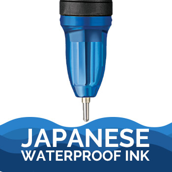 The blue Japanese waterproof ink in this gel pen is completely unaffected by water; no fading, blurring, or discolouration.