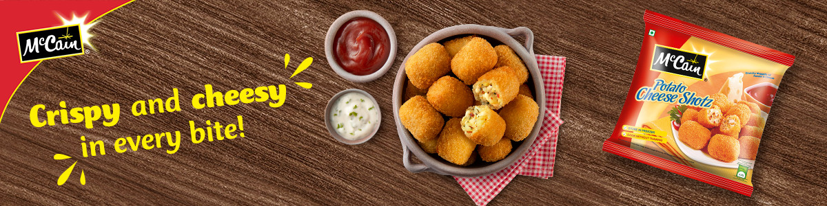 McCain Potato Cheese Shotz are a union of potatoes and herbs that is stuffed with the gooiest cheese that you can come across. Coated in crunchy golden breadcrumbs, this titbit offers you taste and texture in every bite!
