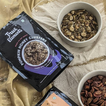 Want to have a quick nutritional sweet treat? True Elements Pumpkin Honey clusters is an ideal snack or dessert choice to satiate your sweet cravings. Great travel-friendly snack to be carried when running late to figure and maybe munched on whenever hunger strikes, roasted to perfection with a spoonful of honey to add to its delicacy. The unique blend of honey adds a light sweetness to the crunchy, roasted pumpkin seeds, making it an ideal sweet treat. They have a sweet and nutty flavour with an earthy aroma.