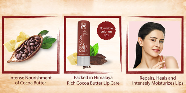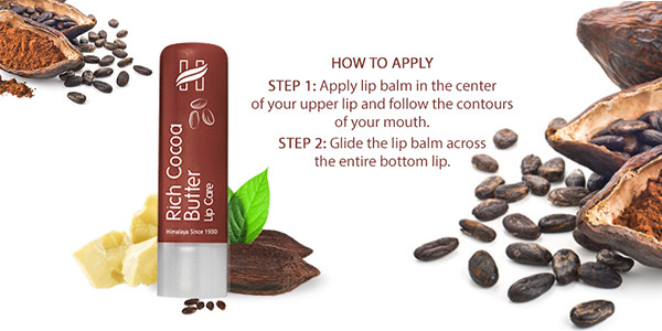 Intense nourishment of cocoa butter packed in Himalaya Rich Cocoa Butter Lip Care. Repairs, heals and intensely moisturizes lips.
