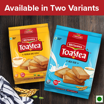 Britannia Rusk comes in two variants - Premium Bake Rusk and Milk Rusk.
