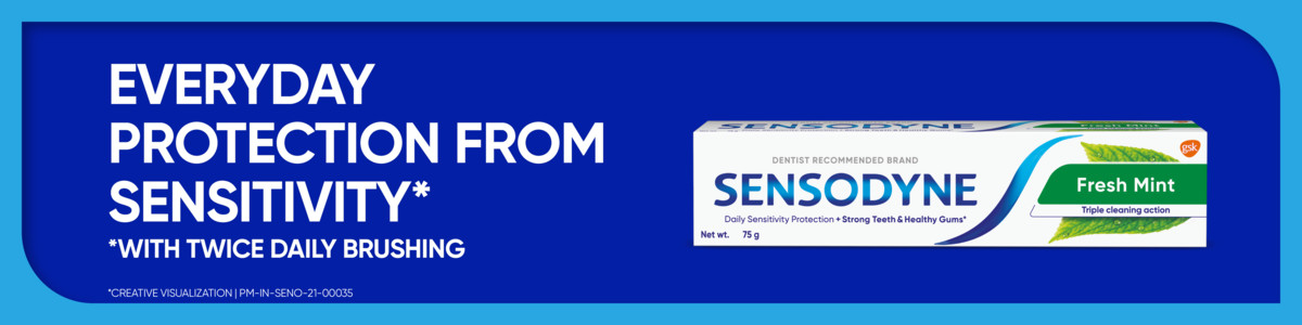 With Sensodyne Fresh Mint, you don't have to compromise on your daily hot cup of tea or coffee, cold water or ice-cream.