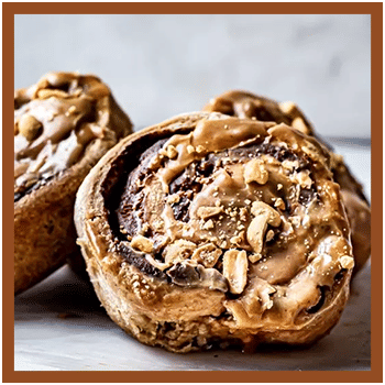 Pure decadence cinnamon rolls with buttery caramel and crunchy almonds.