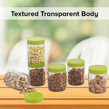 The containers feature a textured transparent body. While the transparent design allows you keep a track on the contents inside, the textured design adds to the look and your kitchen decor.