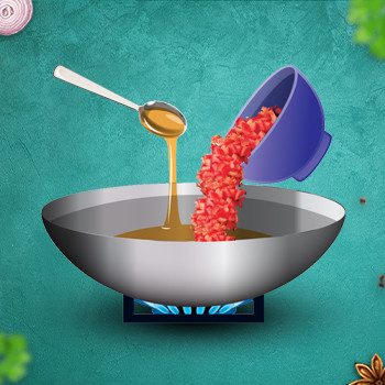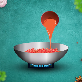 - Heat oil in a pan, add tomato purée & cook till oil oozes out